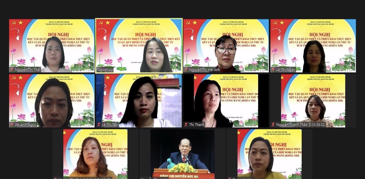 Ngày 08/03/2022 Chi bộ trường mầm non Bồ Đề tổ chức học tập quán triệt, triển khai thực hiện kết luận, quy định của Hội nghị lần thứ tư BCH Trung ương Đảng (khóa XIII) dưới hình thức trực tuyến tới toàn thể các đ/c Đảng viên trong chi bộ.