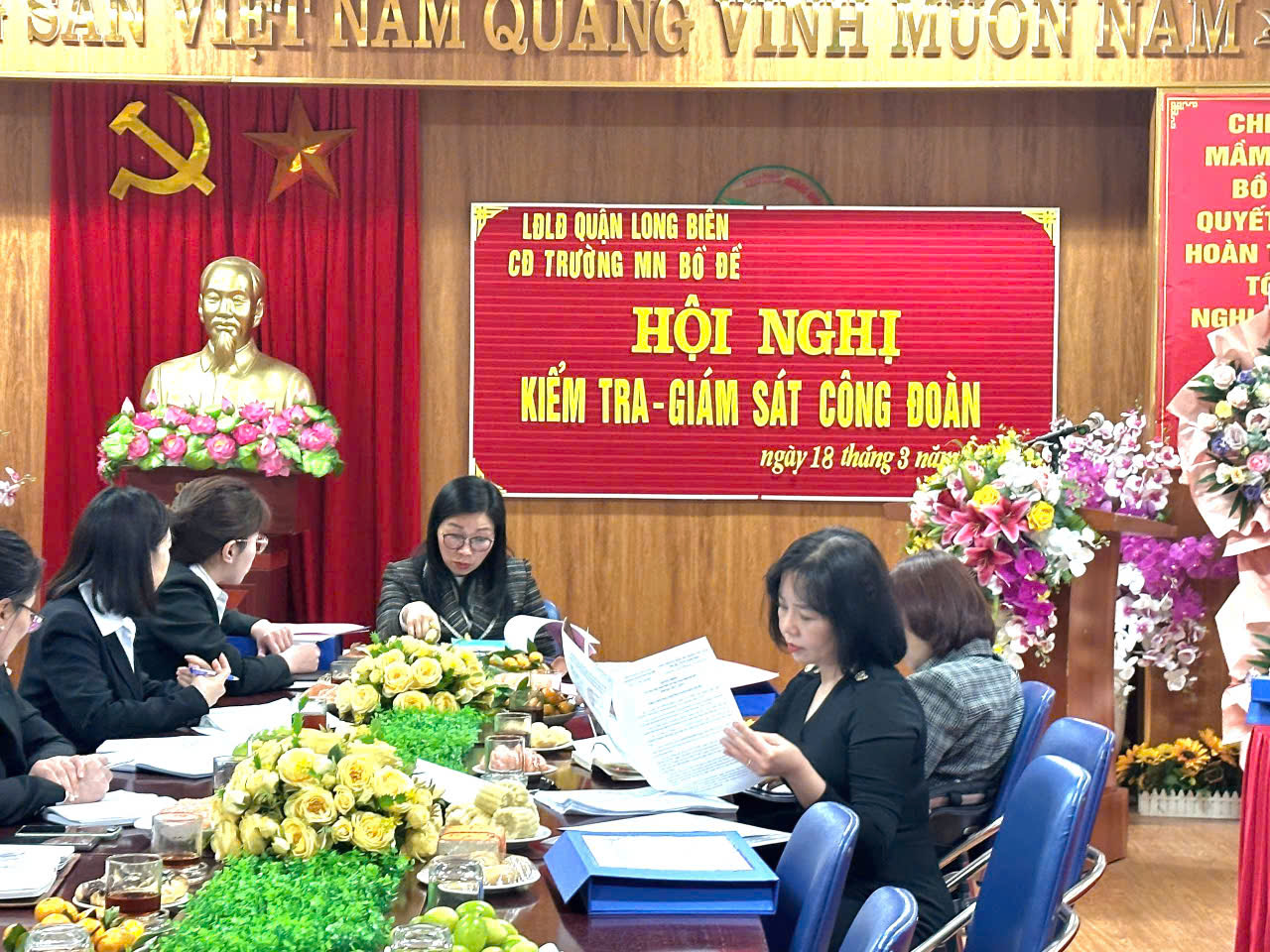 Thực hiện kế hoạch số 46/KH-LĐLĐ ngày 09/01/2025 của LĐLĐ quận Long Biên về việc kiểm tra, giám sát công đoàn cơ sở năm 2025. Sáng ngày 18/3/2025, công đoàn Trường mầm non Bồ Đề đón đoàn kiểm tra, giám sát của LĐLĐ quận Long Biên.
