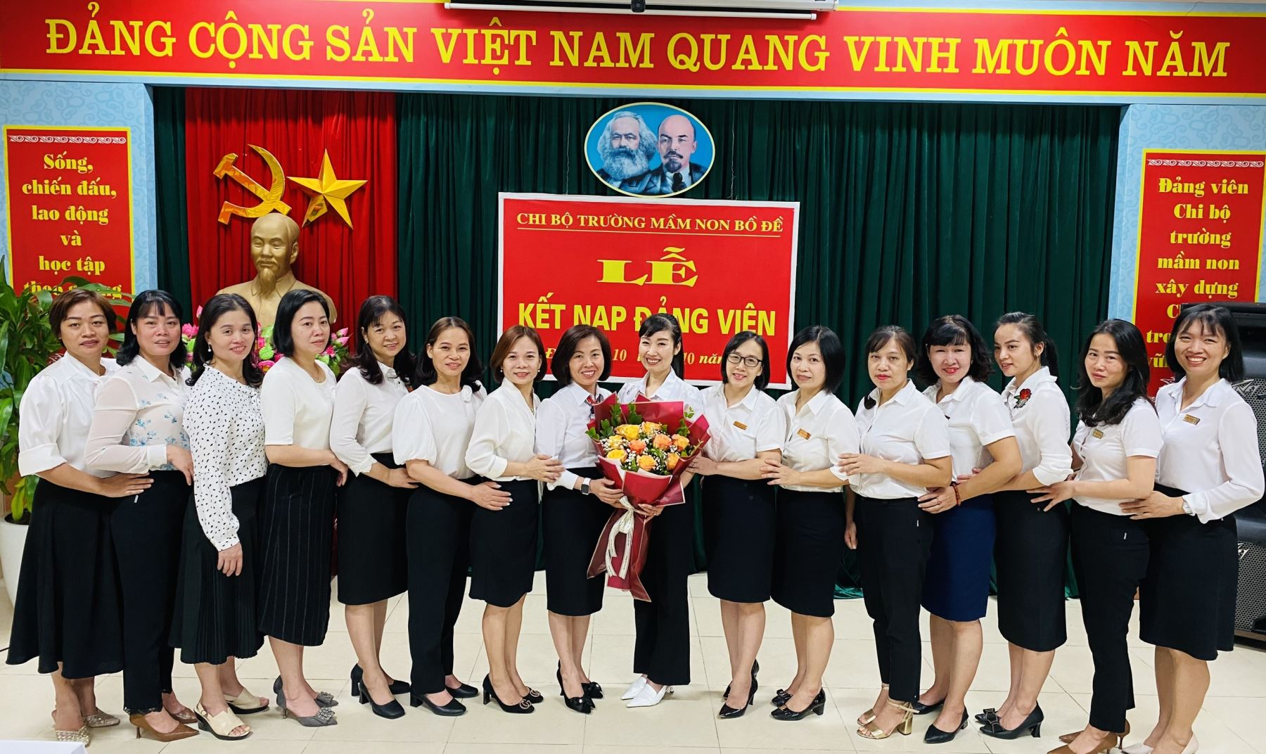 Với ý nghĩa đó, cùng với sự nỗ lực, phấn đấu của bản thân, sáng ngày 10/10/2022, Chi bộ trường mầm non Bồ Đề đã long trọng tổ chức Lễ kết nạp Đảng viên cho quần chúng Nguyễn Thị Phương Thuý.