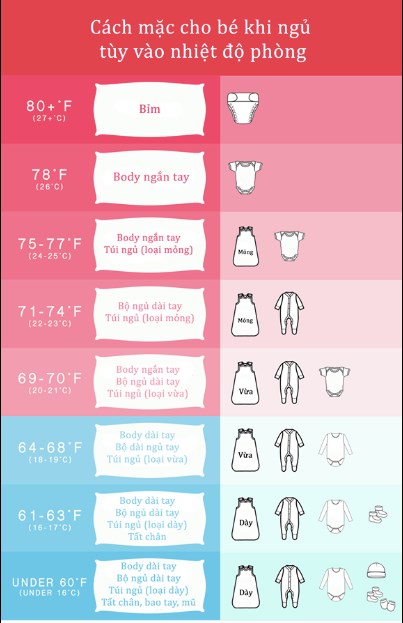Cá !important;ch mặc cho bé khi ngủ tùy vào nhiệt độ phòng