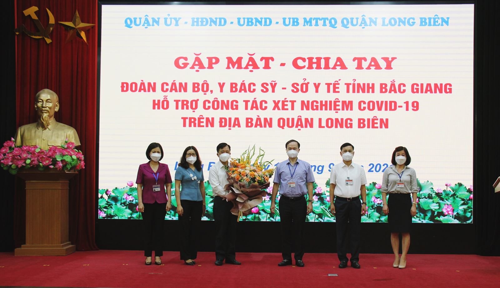 Lãnh đạo Quận Long Biên tặng hoa lãnh đạo Sở y tế tỉnh Bắc Giang