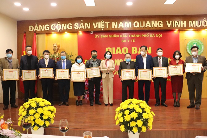Cũng tại buổi giao ban, nhằm ghi nhận những cống hiến của các đơn vị trong thời gian qua, Giám đốc Sở Y tế Hà Nội đã ban hành quyết định khen thưởng đột xuất các đơn vị có thành tích về công tác khám chữa bệnh trong dịp Tết Nguyên đán Nhâm Dần 2022. Theo đó, có 11 tập thể được khen thưởng bao gồm: Bệnh viện đa khoa (BVĐK) Đức Giang, Bệnh viện Phụ sản Hà Nội, BVĐK Hà Đông, BVĐK Hoài Đức, BVĐK Đan Phượng, BVĐK Thạch Thất, Trung tâm y tế (TTYT) Bắc Từ Liêm, TTYT Thanh Xuân, TTYT Hoàn Kiếm, TTYT Sóc Sơn, TTYT Đông Anh.