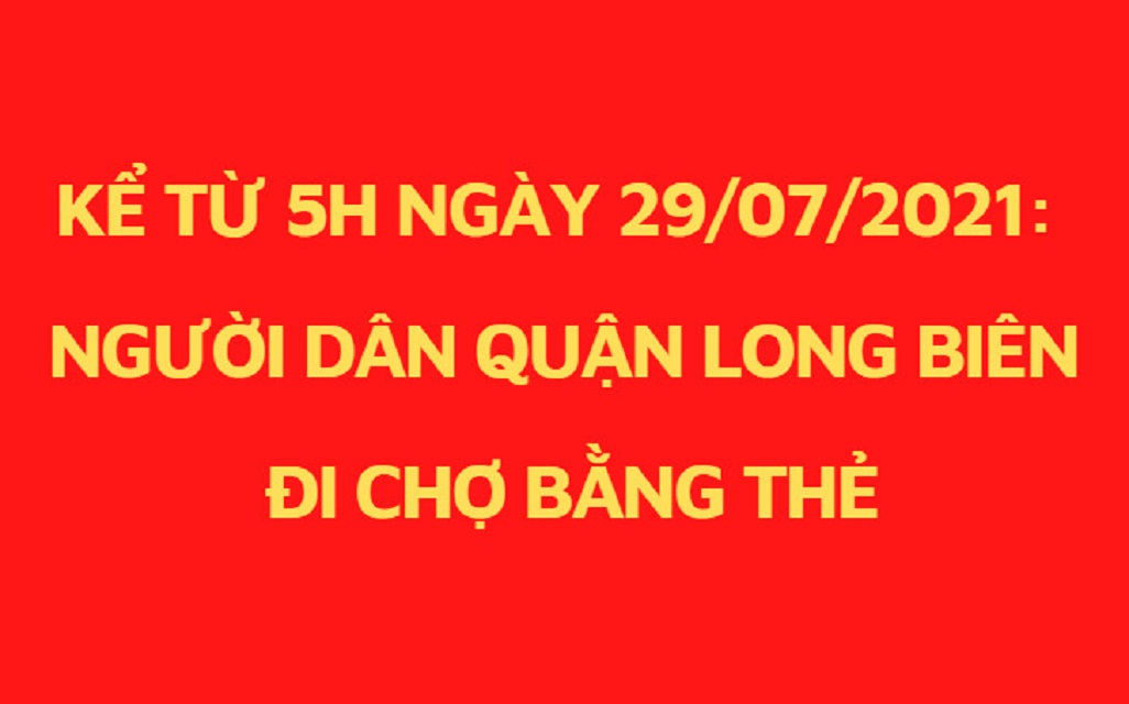 Ngà !important;y 28/07/2021, UBND quận Long Biên đã ban hành công văn 1399/UBND-KT về việc thống nhất phương án phát thẻ vào chợ cho người tiêu dùng trên địa bàn quận.