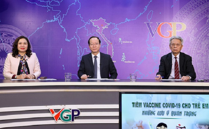 Ngày 18/2, Cổng thông tin điện tử Chính phủ tổ chức tọa đàm Tiêm vaccine phòng COVID-19 cho trẻ em - Những lưu ý quan trọng, với sự tham gia của PGS.TS Dương Thị Hồng - Phó Viện trưởng Viện Vệ sinh dịch tễ trung ương, PGS.TS Trần Minh Điển - Giám đốc Bệnh viện Nhi Trung ương và PGS.TS.BS Nguyễn Thanh Hùng - Giám đốc Bệnh viện Nhi đồng 1 TP HCM.