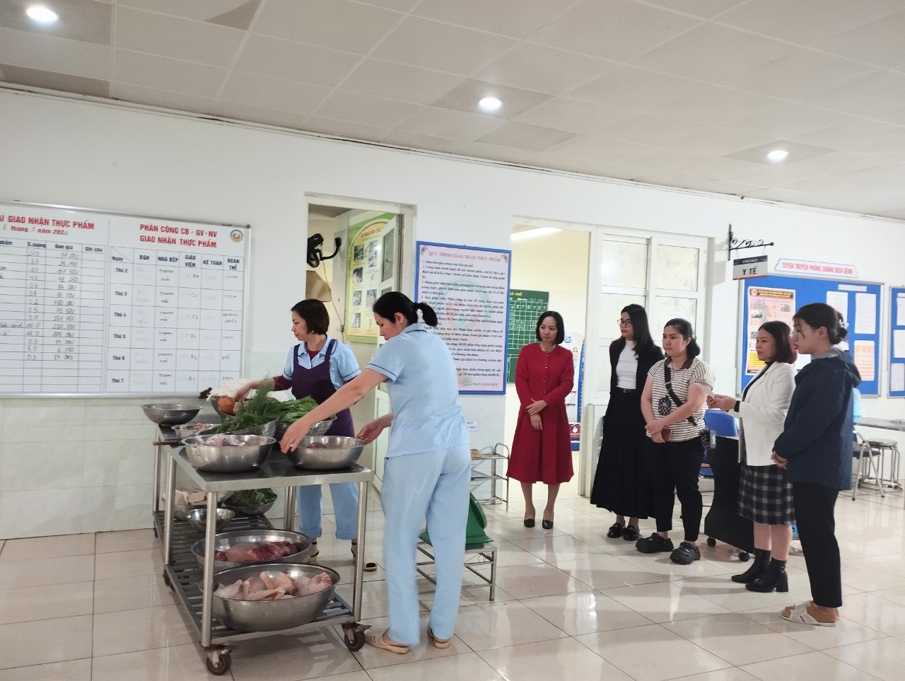 Ngoài việc lựa chọn những đơn vị cung cấp thực phẩm an toàn, uy tín, giao nhận thực phẩm là một khâu vô cùng quan trọng trong công tác phòng chống ngộ độc thực phẩm trong bếp ăn tập thể. Hiểu được tầm quan trọng đó, bếp ăn của trường mầm non Bồ Đề luôn đảm bảo thực hiện khâu giao nhận thực phẩm đúng quy định, làm thường xuyên hàng ngày, đúng quy trình và đủ thành phần tham gia. Hàng ngày, cứ 7h15 phút bếp ăn sẽ tiến hành giao nhận thực phẩm gồm các thành phần: Đại diện BGH, đại diện CMHS, trưởng ban TTND, NV y tế, NV kế toán, người nấu bếp và giáo viên. Thực phẩm phải đảm bảo đủ số lượng, rau tươi không giập nát, thịt tươi ngon không có dấu hiệu lạ. Chính nhờ sự quản lý, chỉ đạo sát sao của BGH, sự tâm huyết, yêu nghề và có trách nhiệm của các cô nuôi nên công tác VSATTP của trường MN Bồ Đề luôn được đảm bảo, trẻ ăn ngon, sạch sẽ, tạo niềm tin đối với các bậc phụ huynh.