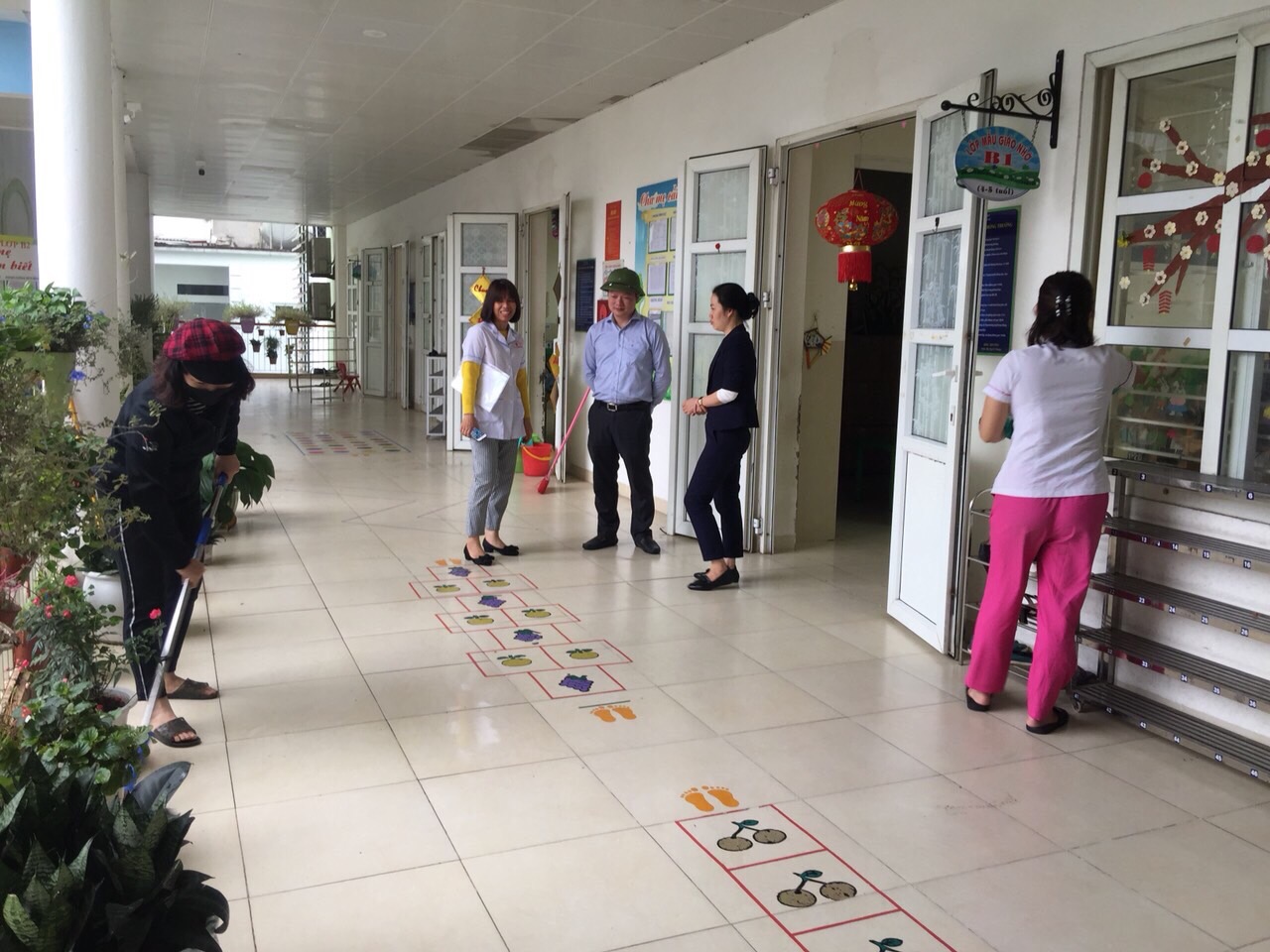 Qua kiểm tra đoàn đã biểu dương ghi nhận và đánh giá cao tinh thần trách nhiệm, sự chủ động tích cực trong công tác phòng chống dịch của tập thể cán bộ giáo viên, nhân viên. Nhà trường đã làm tốt công tác tổng vệ sinh môi trường, khử khuẩn toàn bộ các phòng học, phòng chức năng, phòng hội đồng, cửa sổ, cửa ra vào, tay nắm cửa, tay vịn cầu thang, bếp ăn, sân chơi...đều được lau dọn, khử khuẩn sạch sẽ. Đồng chí Nguyễn Quang Tiến & các thành viên ban chỉ đạo đề nghị nhà trường tiếp tục duy trì thực hiện vệ sinh, khử khuẩn hàng tuần trong thời gian phòng chống dịch bệnh trước khi đón học sinh trở lại trường../