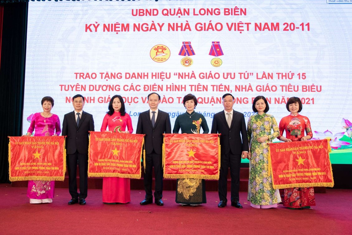 Tại buổi lễ kỷ niệm, UBND quận Long Biên đã trao tặng các danh hiệu cao quý của Nhà nước, Bộ GD&ĐT, Thành phố cho các tập thể, cá nhân tiêu biểu của ngành GD&ĐT quận Long Biên đã đã được trong năm học 2020-2021.