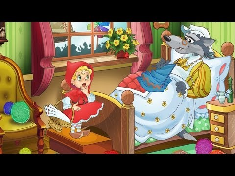 Lúc cô bé quàng khăn đỏ đến, cô thấy chó sói đắp chăn nằm trên giường, cô tưởng “bà ngoại” bị ốm thật, cô hỏi:
