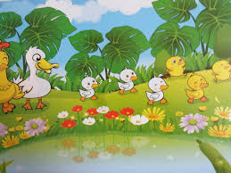 Một buổi sáng đẹp trời, Gà mẹ và Vịt mẹ dẫn các con đi dạo chơi. Gặp nhau Vịt con và Gà con rất vui mừng, chúng chạy nhảy tung tăng, vui đùa trên bãi cỏ xanh. Vịt mẹ và Gà mẹ ngắm nhìn đàn con âu yếm và cùng kể về những đứa con thân yêu của mình.