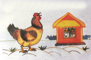 Con gà mái hoa mơ nổi lên: Cục ta cục tác. Cục ta cục tác. Ông bà đừng khóc nữa, cháu sẽ đẻ luôn cho ông bà quả trứng khác, không phải là trứng vàng, mà chỉ là 1 qủa trứng bình thường thôi.