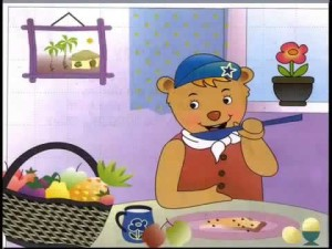 Trong rừng có một chú Gấu con rất thích của ngọt. Mật ong, bánh gatô, các loại kẹo, chú ăn bao nhiêu cũng chẳng chán. Gấu con nhai kẹo suốt ngày. Nhiều hôm đi ngủ rồi mồm vẫn còn ngậm kẹo.