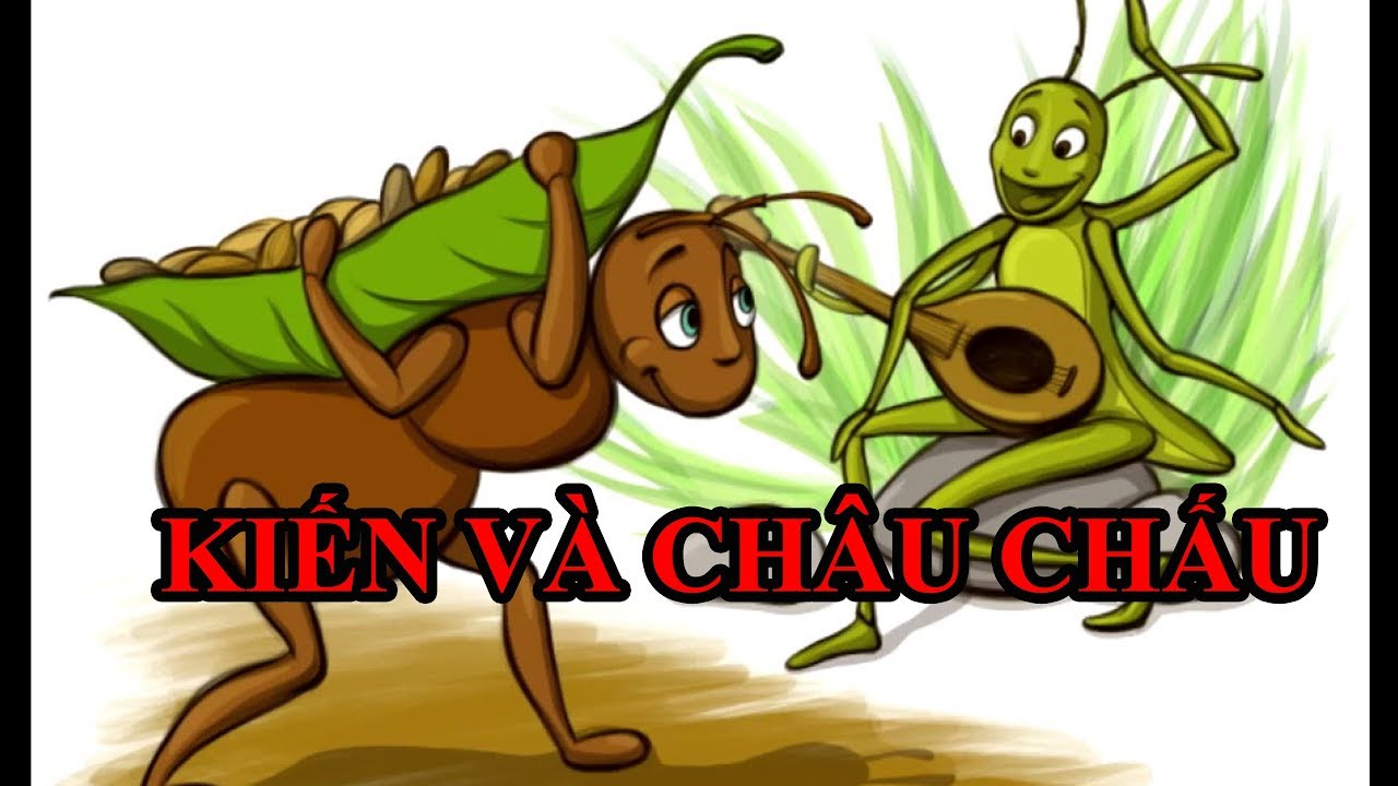 Châu chấu cất giọng rủ rê: "Bạn kiến ơi, thay vì làm việc cực nhọc, chi bằng bạn hãy lại đây trò truyện và đi chơi thoả thích cùng tớ điii!"