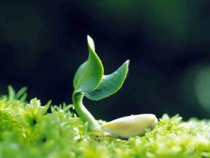 Trên mặt đất, mọc lên một mầm cây nhỏ.