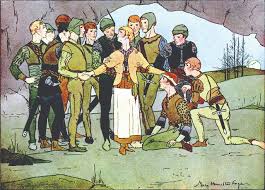 Đến đêm, mười một người đi săn về. Bàn ăn đã dọn sẵn, họ ngồi quanh bàn và ăn. Họ hỏi: