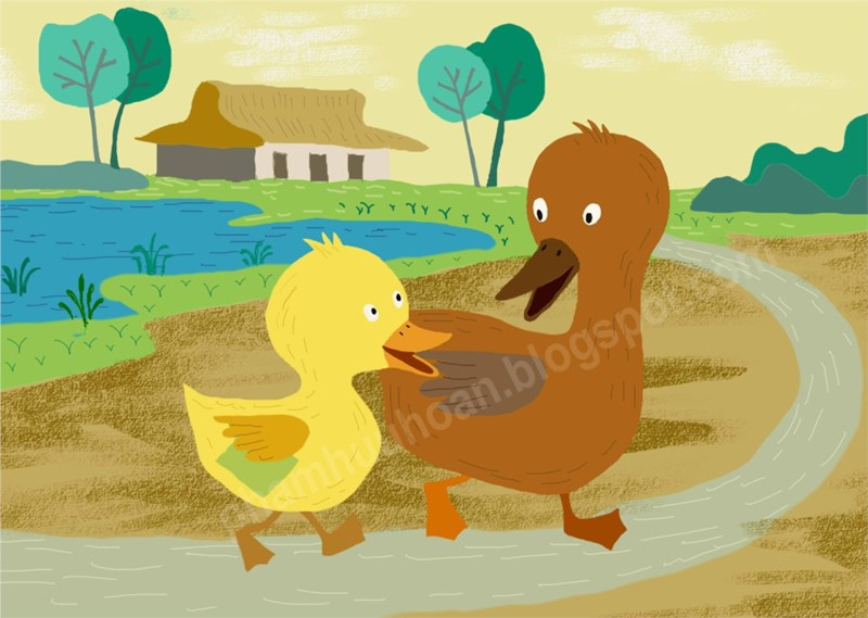 Khi ông mặt trời xuống núi là lúc Vịt Mẹ đón Vịt Con, trên đường về nhà Vịt Con ríu rít kể cho mẹ nghe về cô giáo và các bạn của mình..