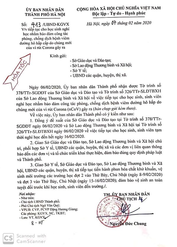 Thông báo chính thức từ UBND thành phố Hà Nội
