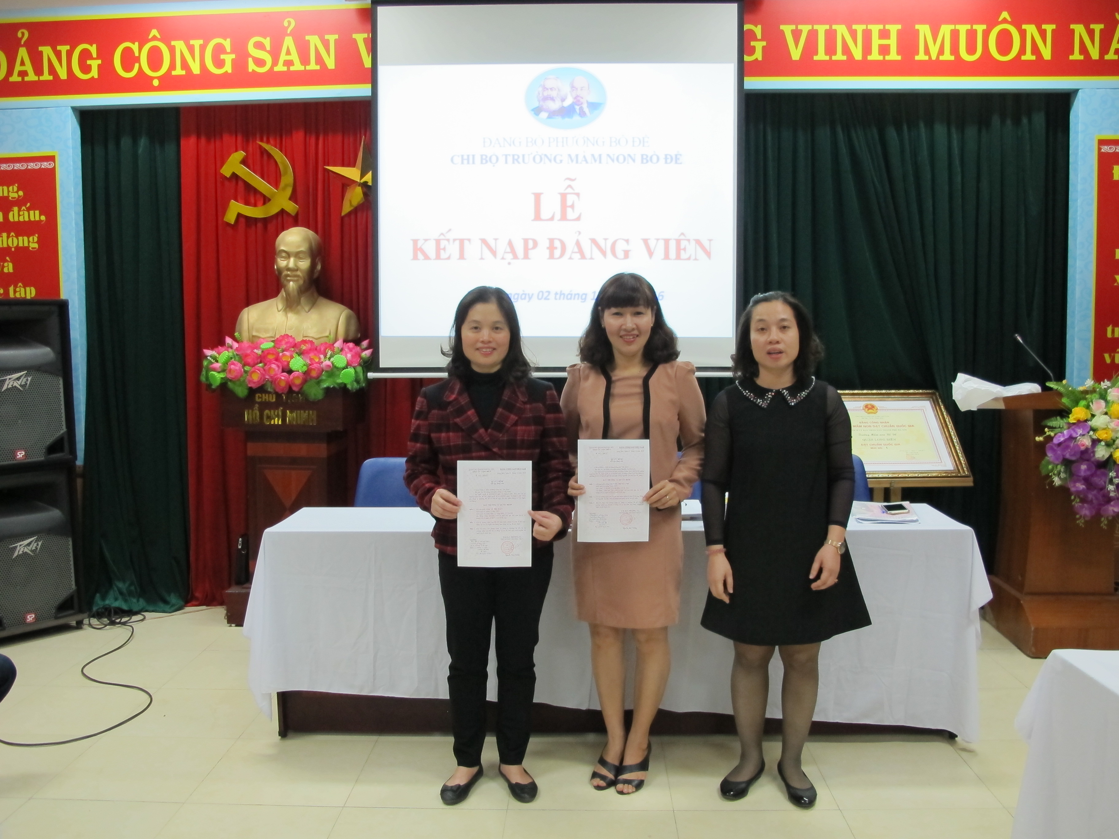 Thực hiện Quyết định của Ban thường vụ Quận ủy Long Biên. Chiều ngày 02/12/2016, Chi bộ Trường mầm non Bồ Đề tổ chức Lễ kết nạp Đảng viên mới.