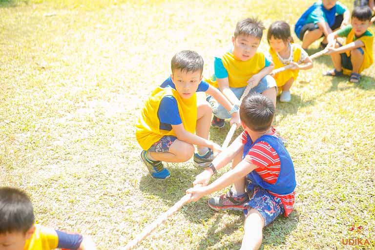 * Lưu ý: có thể không dùng dây thừng mà cho hai trẻ đứng đầu cầm tay nhau kéo, các bạn tiếp theo ôm ngang lưng bạn.