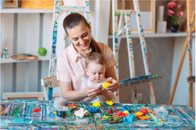 Mẹ hướng dẫn bé cách dùng đất nặn bằng hành động của mình trước mẹ nhé! Sau đó, mẹ cùng bé nặn các đồ vật, hình khối quen thuộc như: hình tròn, cái cây,…