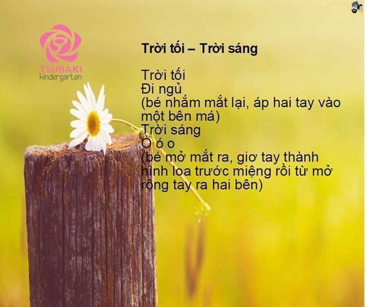 Khi nghe cô !important; giáo nói “trời tối” thì trẻ phải ngồi thụp xuống đất, nghiêng đầu áp 2 bàn tay vào má và nhắm mắt ngủ. Để cho trẻ nhắm mắt trong khoảng 10-30 giây. Sau đó cô lại nói “trời sáng”, trẻ sẽ từ từ đứng dậy đồng thời khum 2 bàn tay đưa lên miệng và bắt chước tiếng gà trống gáy :